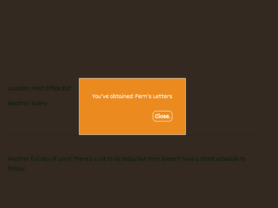 Untitled Farm Game is silly little interactive fiction game where you can follow a simple day in the life of Fern, our resident carrot farmer. Help her finish her daily tasks and play around with the things you can put in her bag!